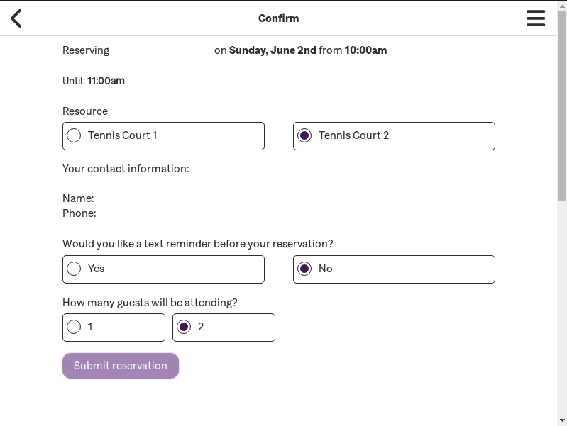 The booking form