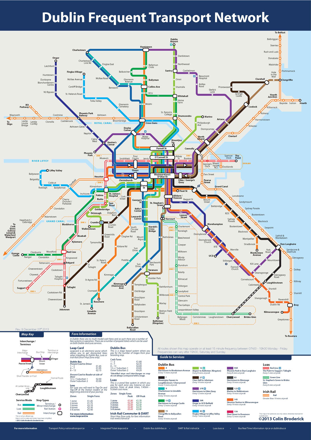 Now complemented by an map of the main tourist area of Dublin showing all the key stops for the routes shown on the Frequent Transport Map.