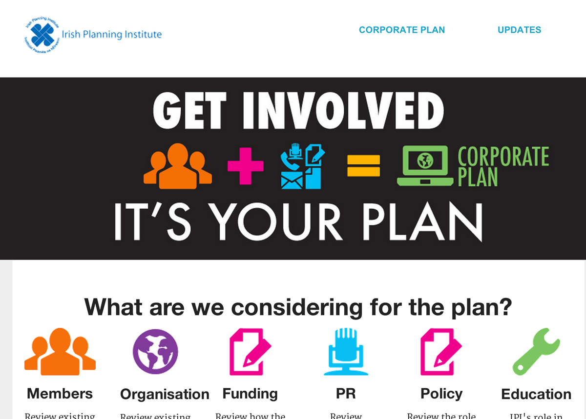 This was a mini website developed to aid the discussion among members ahead of the Irish Planning Institute preparing corporate plan for the organization. It is powered by Jekyll and hosted on Github.io.
