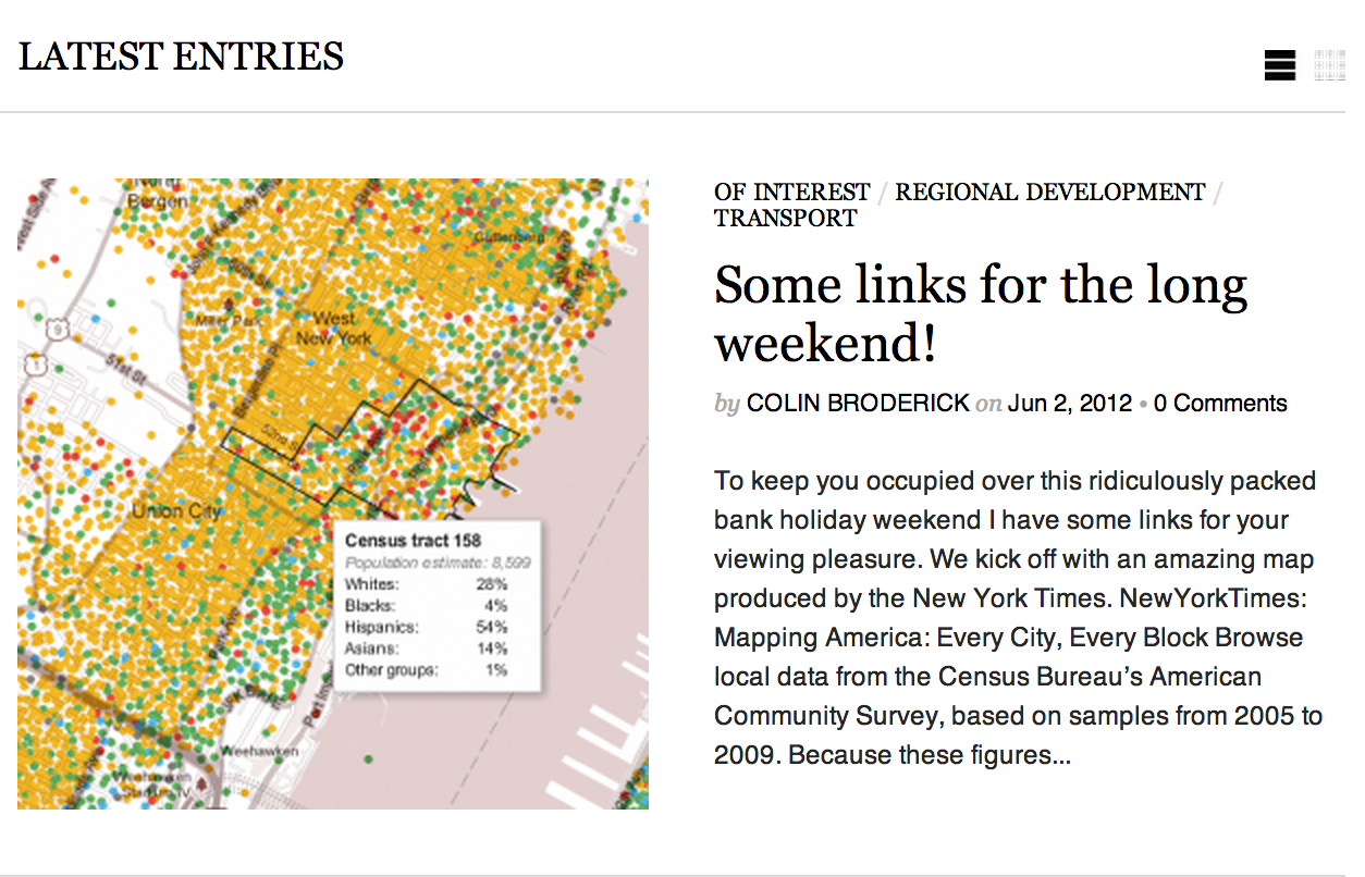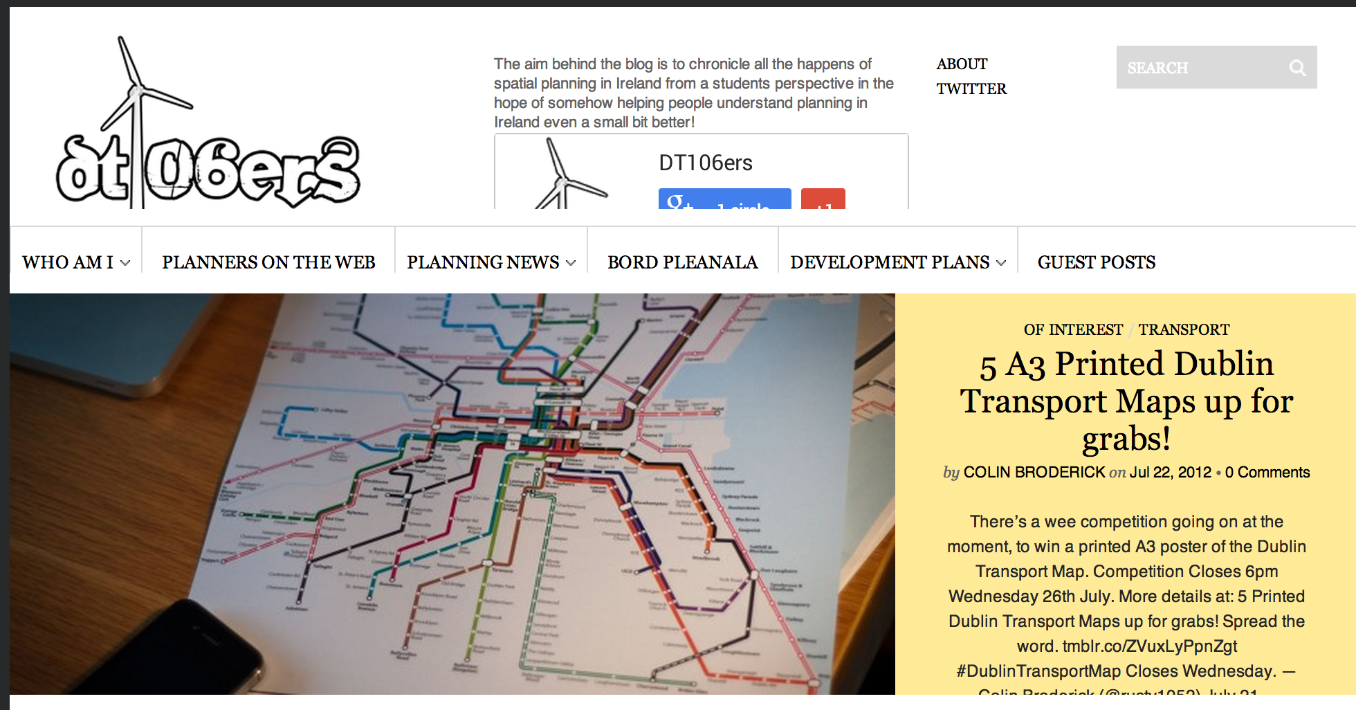 DT106ers is a blog I have run for a number of years on the topic of planning in Ireland. It attempts to raise the profile of planning while also highlighting interesting international issues. The blog allowed me to keep abreast of the main issues and challenges facing planning while I was attending university.